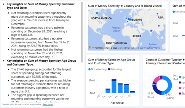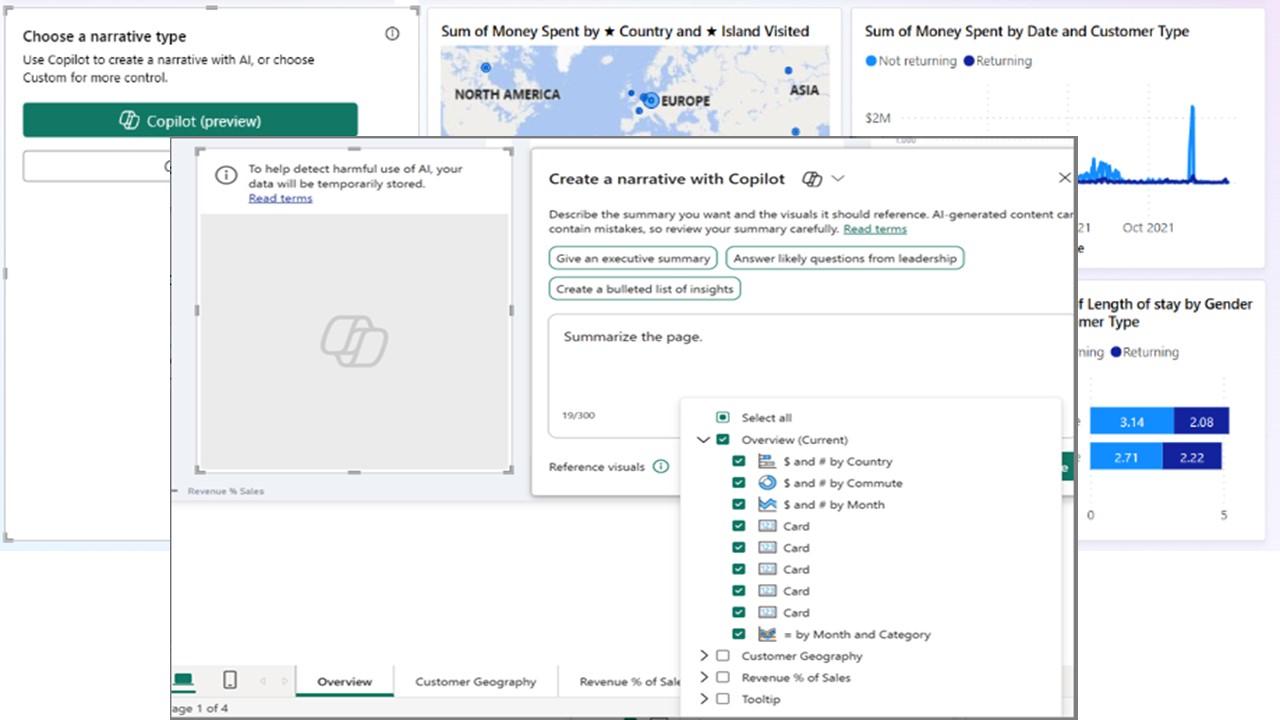Simply describe in natural language what you’d like to see in the dashboard, and Copilot will generate an interactive dashboard for you. Afterward, you can adjust the dashboard to better meet your needs. Additionally, Copilot can suggest content for your reports based on your semantic model.