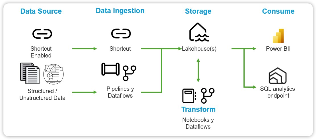 - Easily pull in data from multiple sources and store insights in Lakehouses.