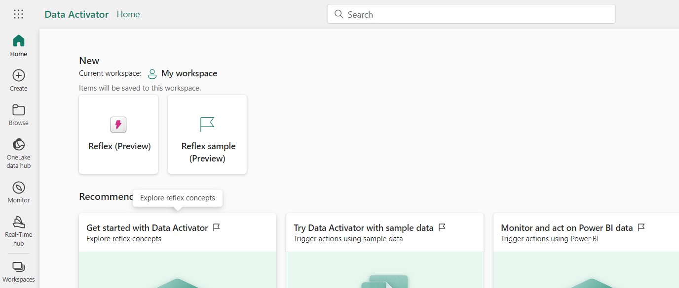 - Reflex sample: You can monitor datasets, queries, and event streams for patterns to trigger actions and alerts with sample data.