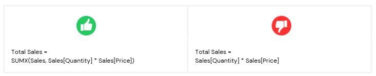 SUMX,AVERAGEX,ADDCOLUMNS, and others iterate over a table, creating a row context for each row processed.