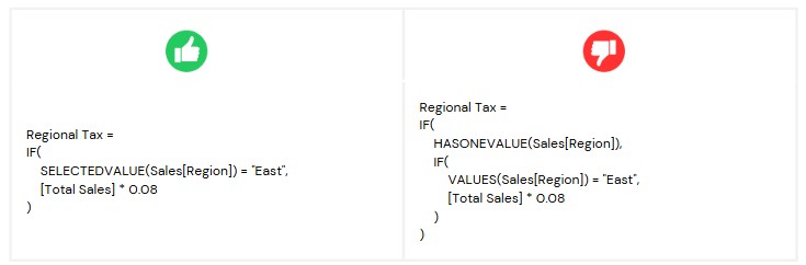 11. Use SELECTEDVALUE instead of HASONEVALUE and VALUES