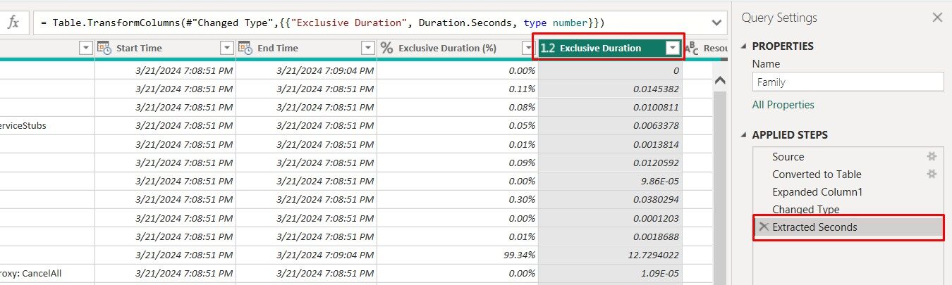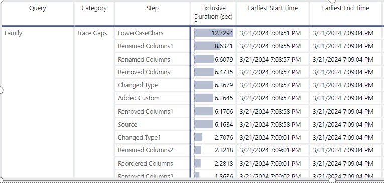 Tip: Focus on the Exclusive Duration column and summarize the values to understand which steps consume the most resources or take the longest time.