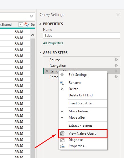 Value.NativeQueryin Power Query, include all necessary transformations directly in the native query. Avoid Additional Steps After Native Queries as any additional transformations applied after the native query will not fold and will be processed locally, potentially reducing performance. - When Query Folding Is Not Possible: For queries requiring numerous non-foldable transformations, it is highly recommended to apply those transformations directly at the data source, as mentioned in Point 2, this can be achieved by leveraging ETL tools, database views, or stored procedures.