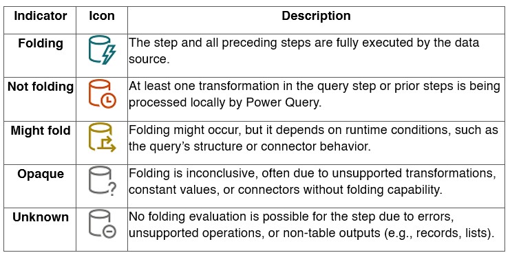 - Using Query Folding Indicators (Power Query Online):