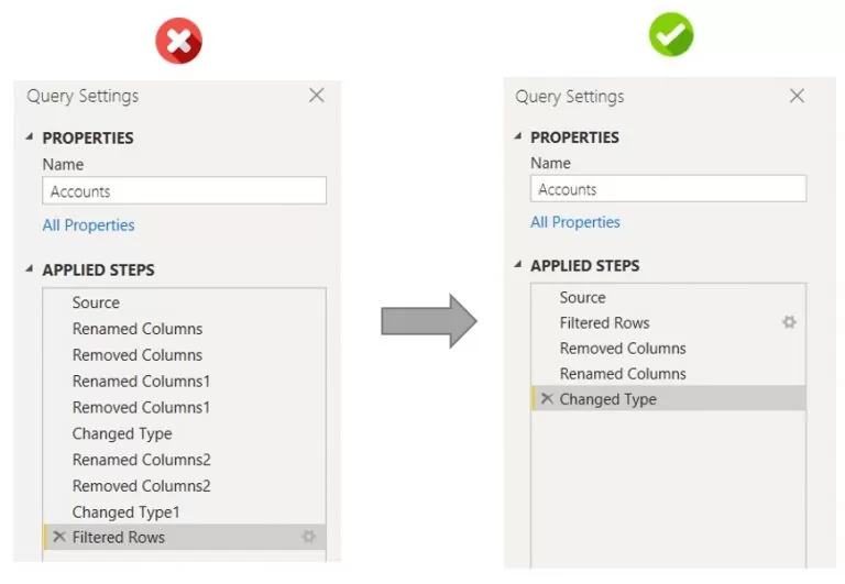 - Achieve Full Query Folding Whenever Possible: The goal of fully folding is to ensure that all necessary transformations are executed by the data source rather than locally within Power BI. By delegating all transformations to the data source, Power BI receives the final result set, reducing resource consumption and enhancing query speed.