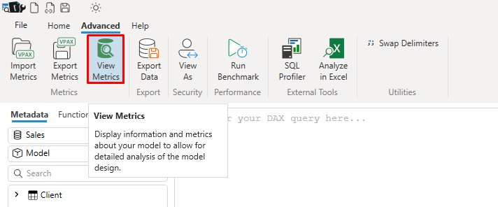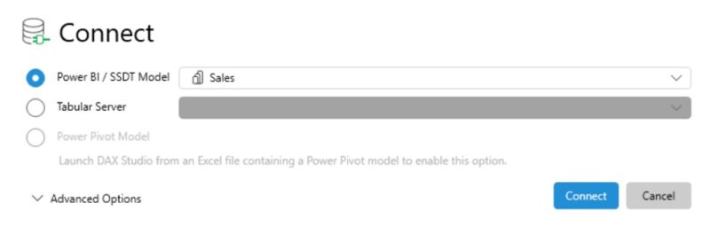 1. Launch DAX Studio: Open DAX Studio and connect to the Power BI model you want to analyze.