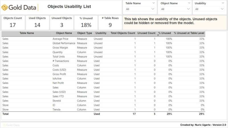 - Detect which measures, columns, and tables are unused in your connected reports and decide whether to keep, hide, or delete them.