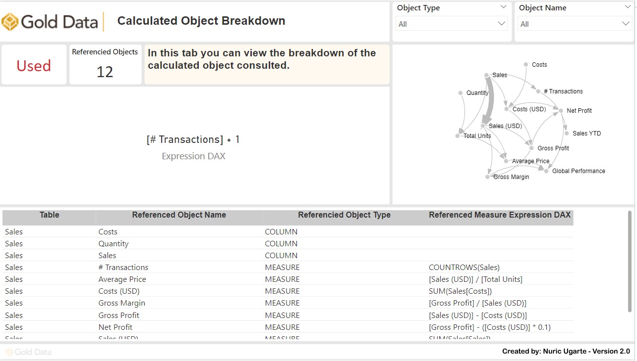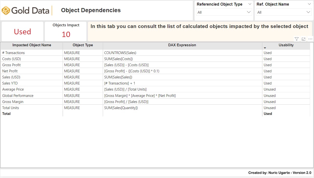 • Referenced Objects Table: Examine the tables, measures, or columns used by the selected object.