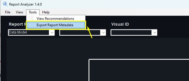 2. Open Report Analyzer (an external tool) which allows to extract metadata from connected reports.