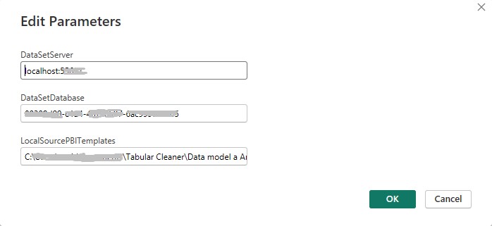 3. Finally, update the LocalSourcePBITemplates parameter in Power BI to point to the folder where the .txt files generated by Report Analyzer in Step 2 are saved.