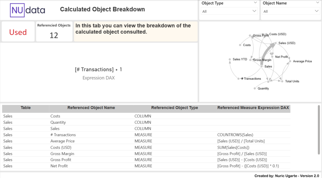 - Referenced Objects Table: Examine the tables, measures, or columns used by the selected object.