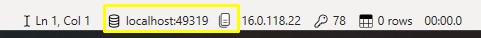 3. Locate the server name and port in the lower-right corner (e.g., localhost:52223).